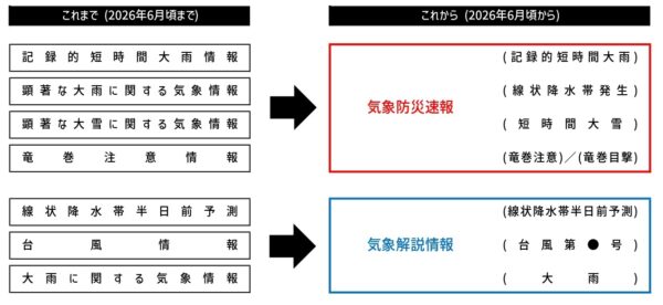 気象庁から発表される情報が様々あり、危険の切迫度が分かりにくいことから、情報のタイトルが工夫されます。