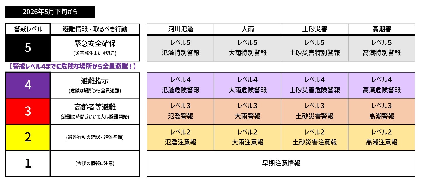 これまでも避難行動をとるべき段階に応じて、1~5までの「警戒レベル」が設定され、