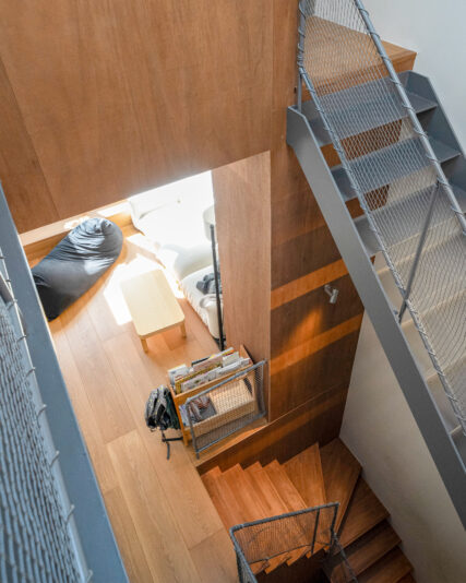 間口約4m、奥行き約20m。建物幅は最大3.2mという条件の敷地への建築計画。主に店舗設計を手掛ける一級建築士のご主人が家づくりのパートナーに求めたのは「専門的な話に付き合ってくれる、戸建設計のプロ」であることでした。「自分の家だからこそ悩みたいし、色々検討したかったんです。『この中から選んでください』ではなく、一緒に悩んで考えてくれるような、そんな会社を探していました」とご主人。そんな折、知人の紹介で出逢ったのがFS。敷地条件や立地条件を踏まえ、ご主人とFS担当者の2人が共通して頭に想い描いたのが、建築家·安藤忠雄氏の「住吉の長屋」だったのです。