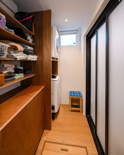 玄関土間部分。写真手前側にご主人の事務所スペースがある。