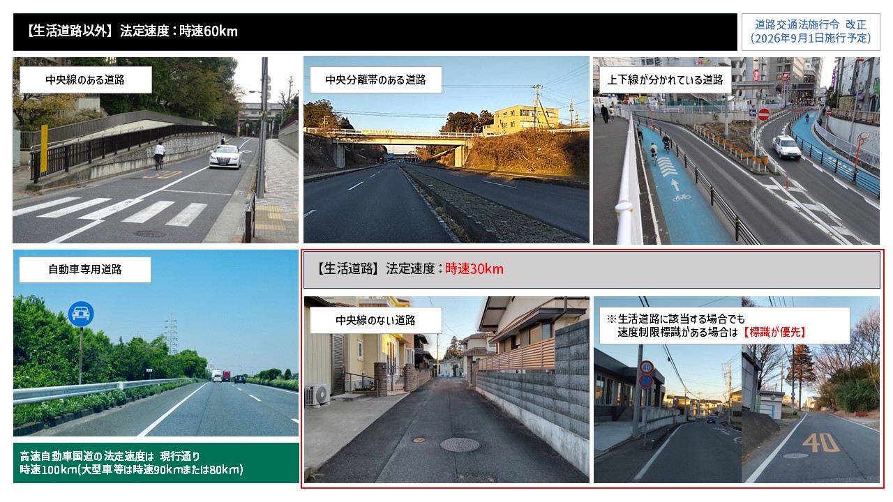 2026年9月1日から、生活道路での法定速度が【時速30km】に変わります。