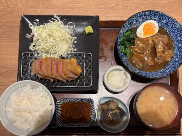 私は牛カツ+豚バラ煮込み定食を頼みました