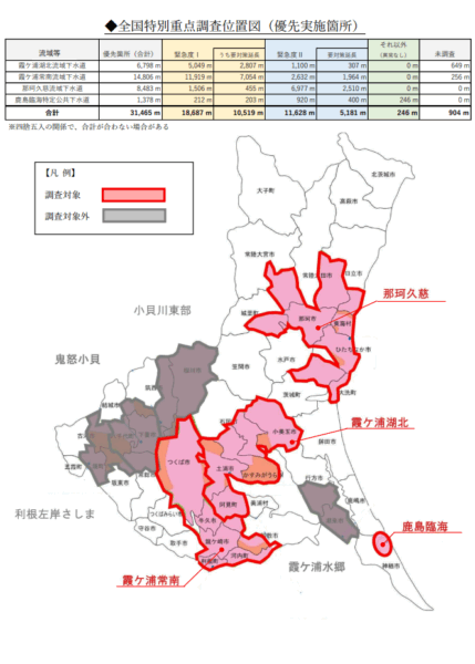 →霞ケ浦湖北、霞ケ浦常南、那珂久慈の各流域下水道と鹿島臨海公共下水道の4エリアの管路が該当
