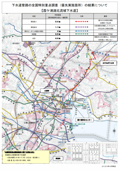 2025年1月に埼玉県で発生した道路陥没事故を受け、国からの要請に基づき、茨城県内で下水道管路の緊急点検が行われました。茨城県の結果が公表されました今回の調査で、敷設されている管路の一部が「緊急度Ⅰ・Ⅱ」と判定されました。