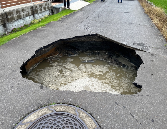 ⇩今年6月に発生した、土浦市西真鍋町の4m道路の下水道陥没