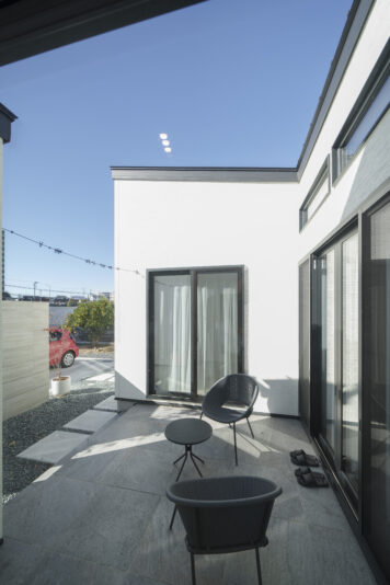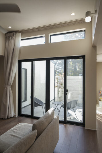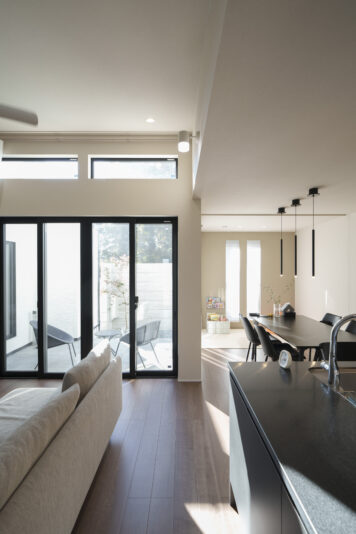 最初は大きな価格差が無かったんですが、断熱等の性能を希望レベルで揃えたら、FS は標準仕様でそれを満たしていて、コスパが良かったんです」と奥さま。撮影日は綺麗な青空。今日もO邸から、水戸の街が見渡せます。